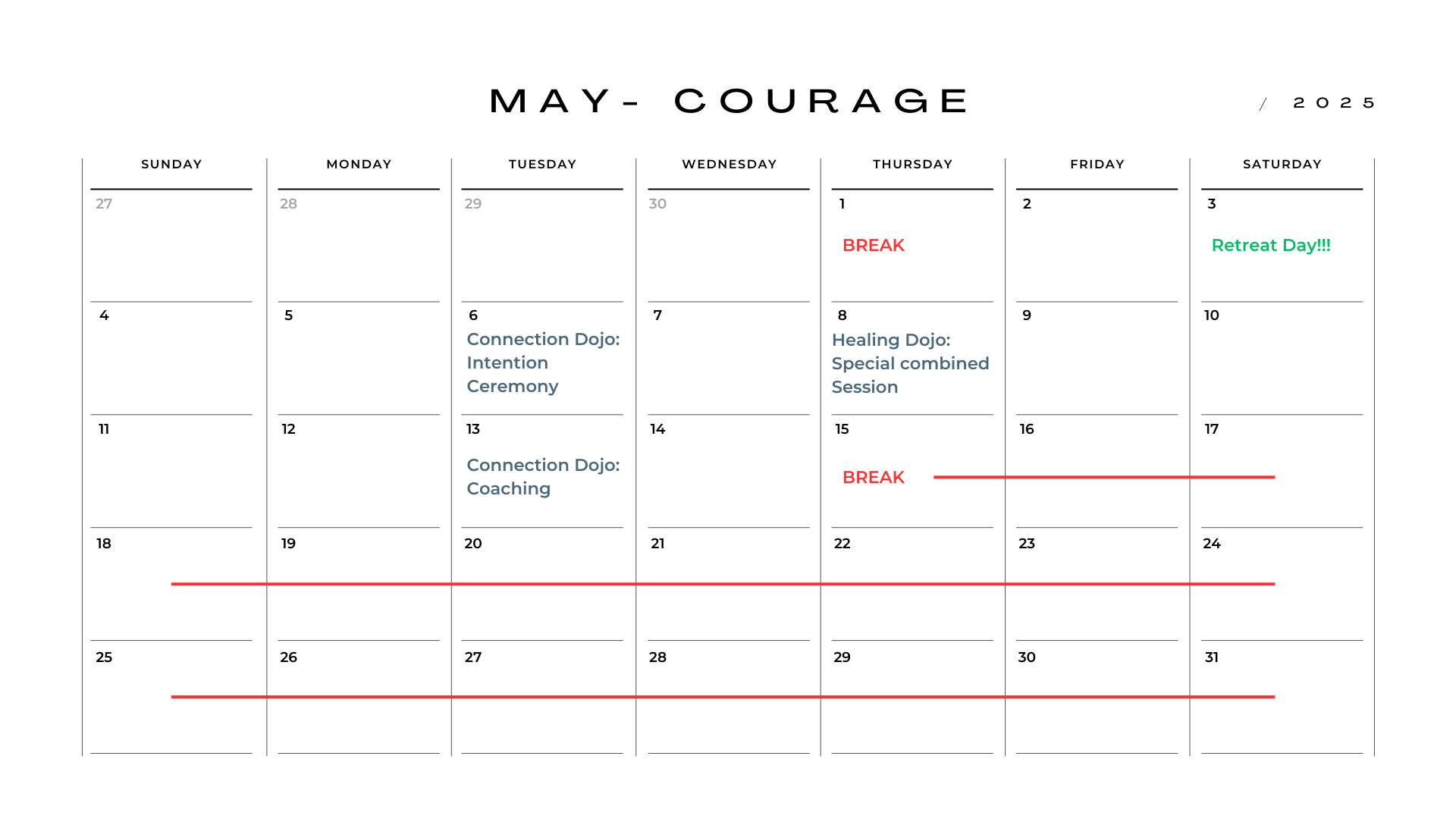 Retreats and other in-person experiences will be shared as they unfold.